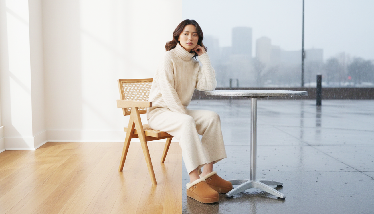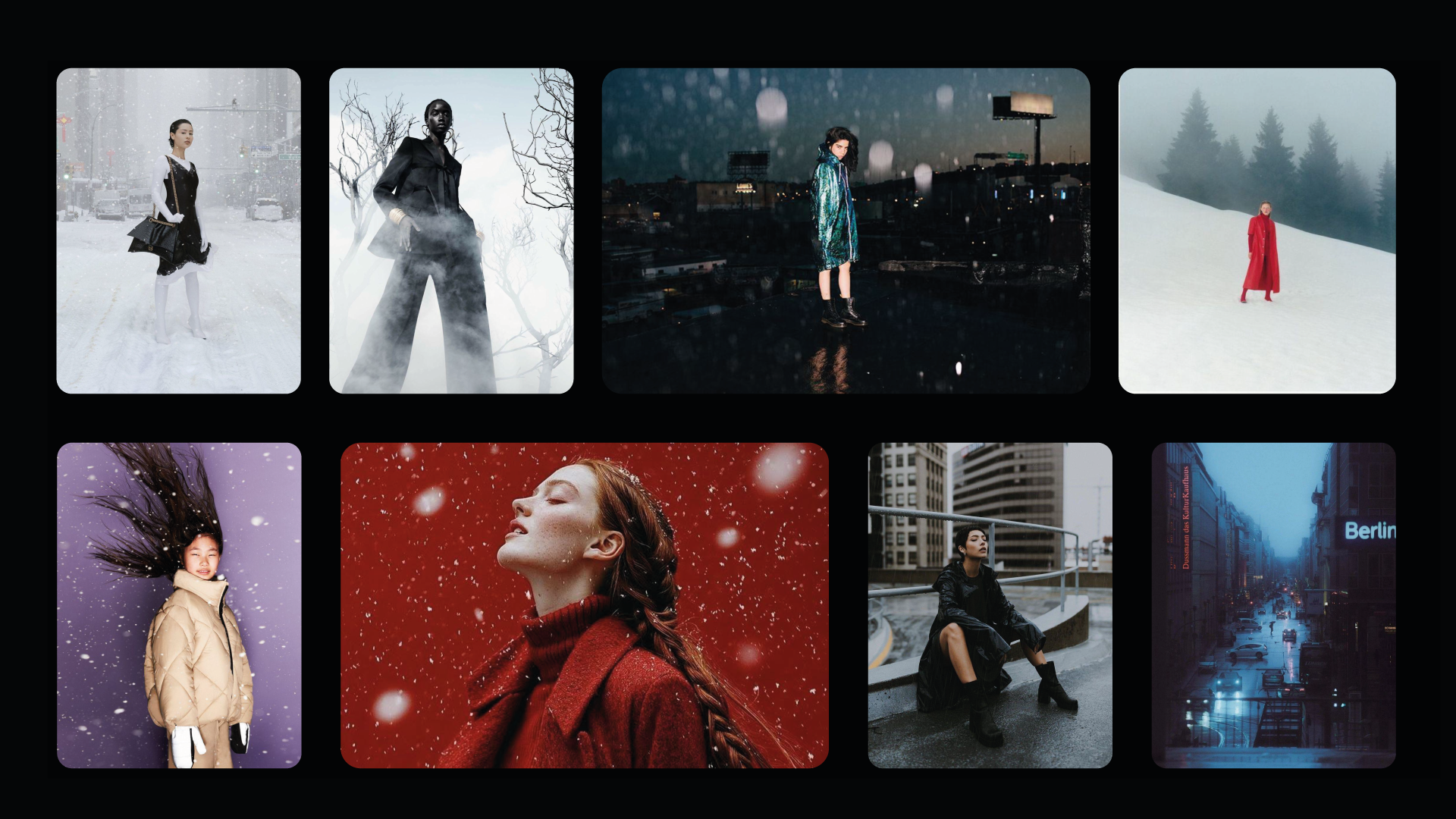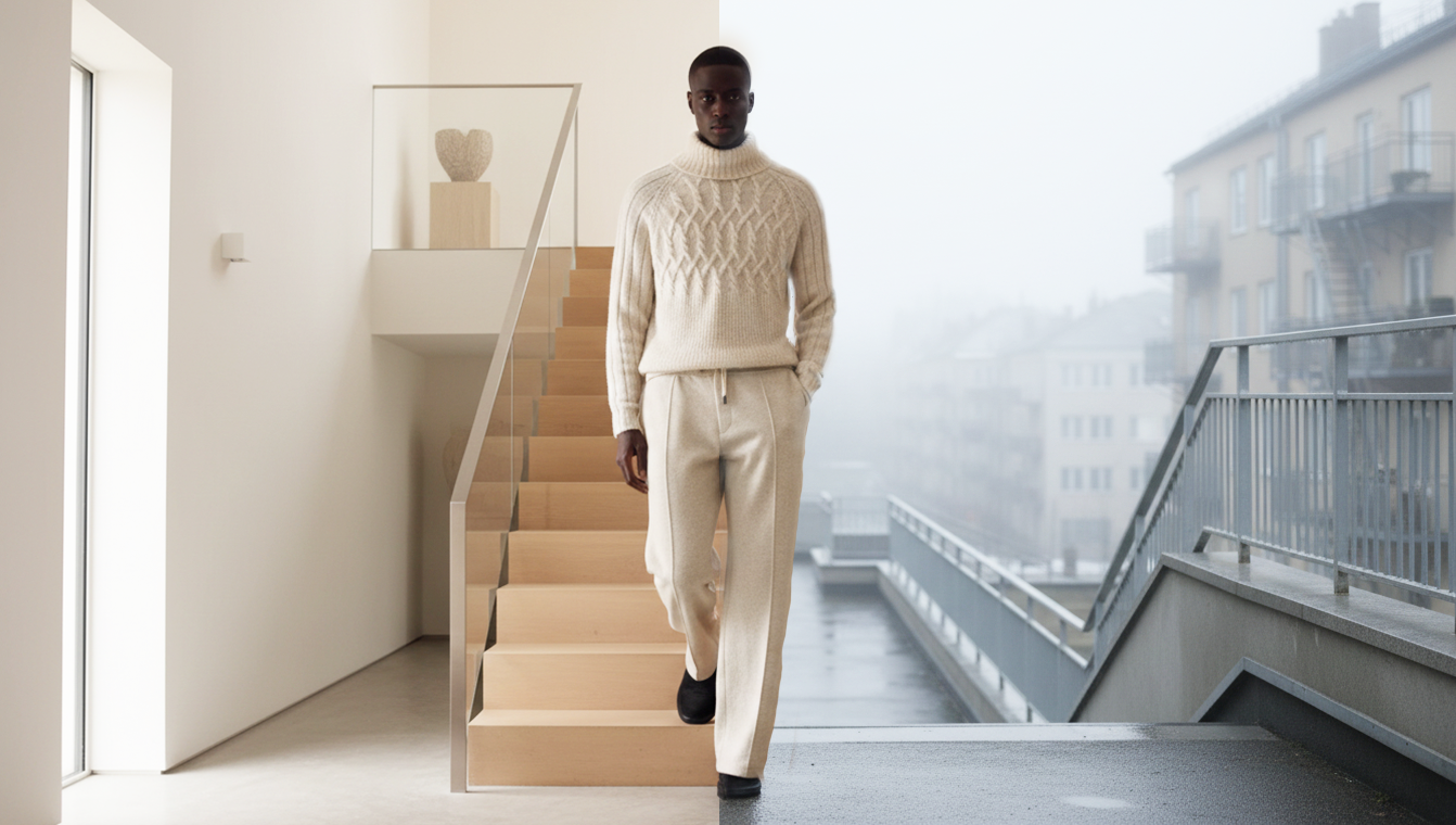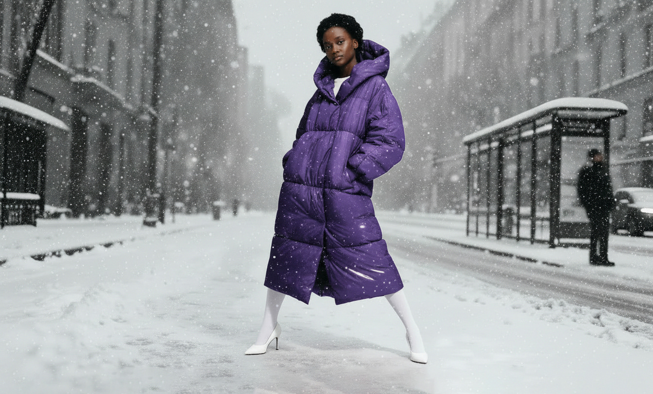 Visuals were created using AI-assisted generation (Nano Banana), inspired by real fashion editorials and winter lighting setups. Final compositions were refined and retouched in Photoshop to ensure realism, texture consistency and brand integration.